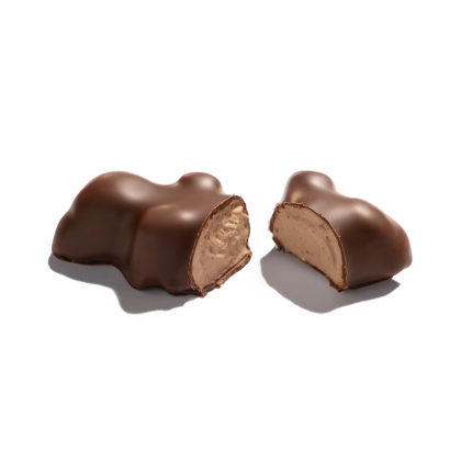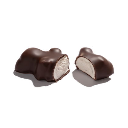 Enjoy an assortment of 5 praline marshmallow bears, delicately coated in milk chocolate, and 5 vanilla marshmallow bears, wrapped in intense dark chocolate.