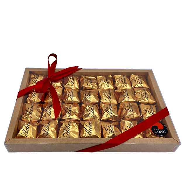 Las castañas de la Maison Adam son deliciosamente fundentes y perfumados, envueltos en papel dorado y disponibles en latas de 6, 18 o 28 piezas.